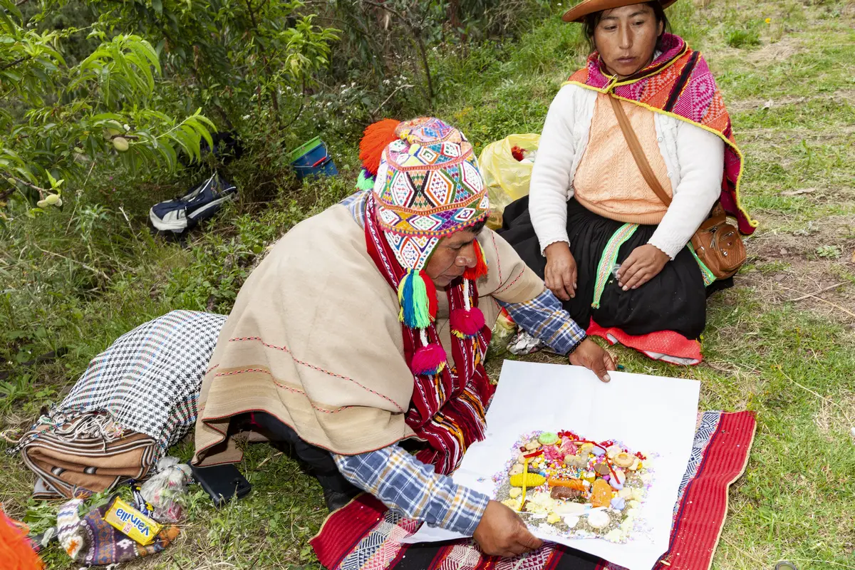 The ceremony with coca leaves is used to create solidarity in the group, friendship, wisdom, courage and harmony with the supernatural planet, is a major part of the cosmic system. The spiritual relationship between humans and the Pachamama (Mother Earth) is a continuous interaction, coca leaves are an intermediary that connects by forging an intimate bond between people and the sacred spirits, act as guides, as a guarantee or pact of collaboration between human beings and the spiritual God.